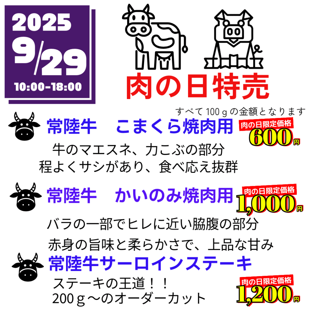 9月29日(月)肉の日のお知らせ